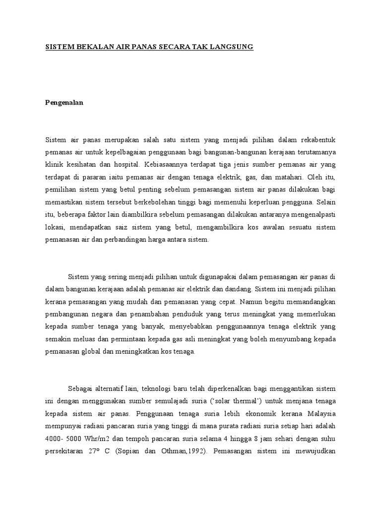 Sistem Bekalan Air Panas Secara Tak Langsung Pdf